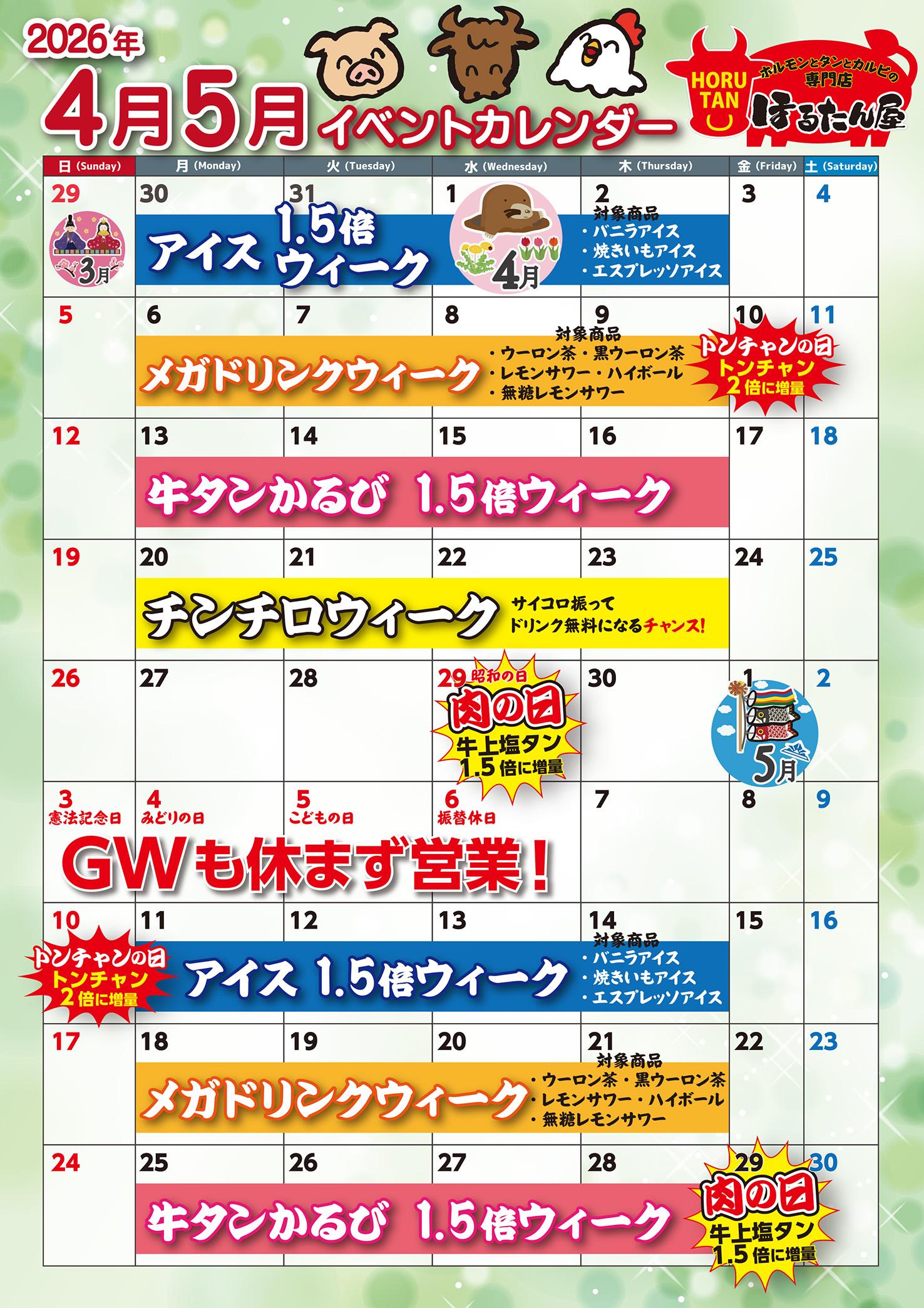 ほるたん屋全店で実施中是非この機会にご来店下さい!※一部店舗では価格が異なります。